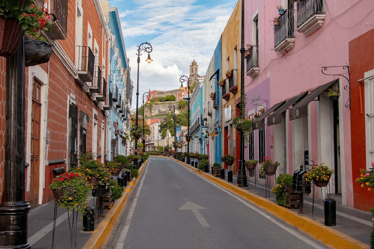 Para llegar, hay que subir el impresionante mural de los Danzantes Atlixcáyotl, creado por Juan Manuel Martínez Caltenco. Justo al lado está la Avenida Hidalgo, una preciosa calle en la que todas las casas y balcones están decoradas con colores, flores y alegría.