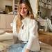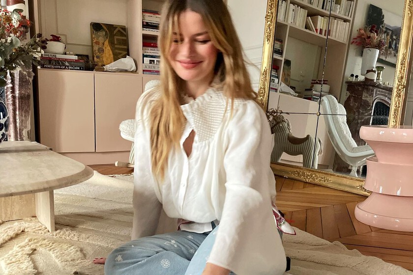 Con un calzado tan lujoso y old money como este, el resto del look tiene que ser lo más simple posible, para no restarle protagonismo. Nuestra recomendación es seguir el ejemplo de la francesa Sabina Socol: unos jeans rectos y una blusa romántica blanca. Es que cuando tienes una joya así en el armario, poco más necesitas.