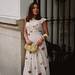 Vestido blanco bordado de bajo abullonado, escote cuadrado y tirantes con costuras vistas de Mango.