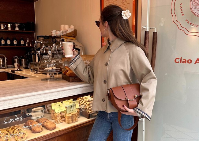 Este es un ejemplo perfecto para inspirarnos a lucir los mocasines de Lefties como hacen las parisinas: con calcetines blancos, vaqueros retro y una chaqueta trench, tirando de básicos del fondo de armario para conseguir estilismos atemporales y old money.